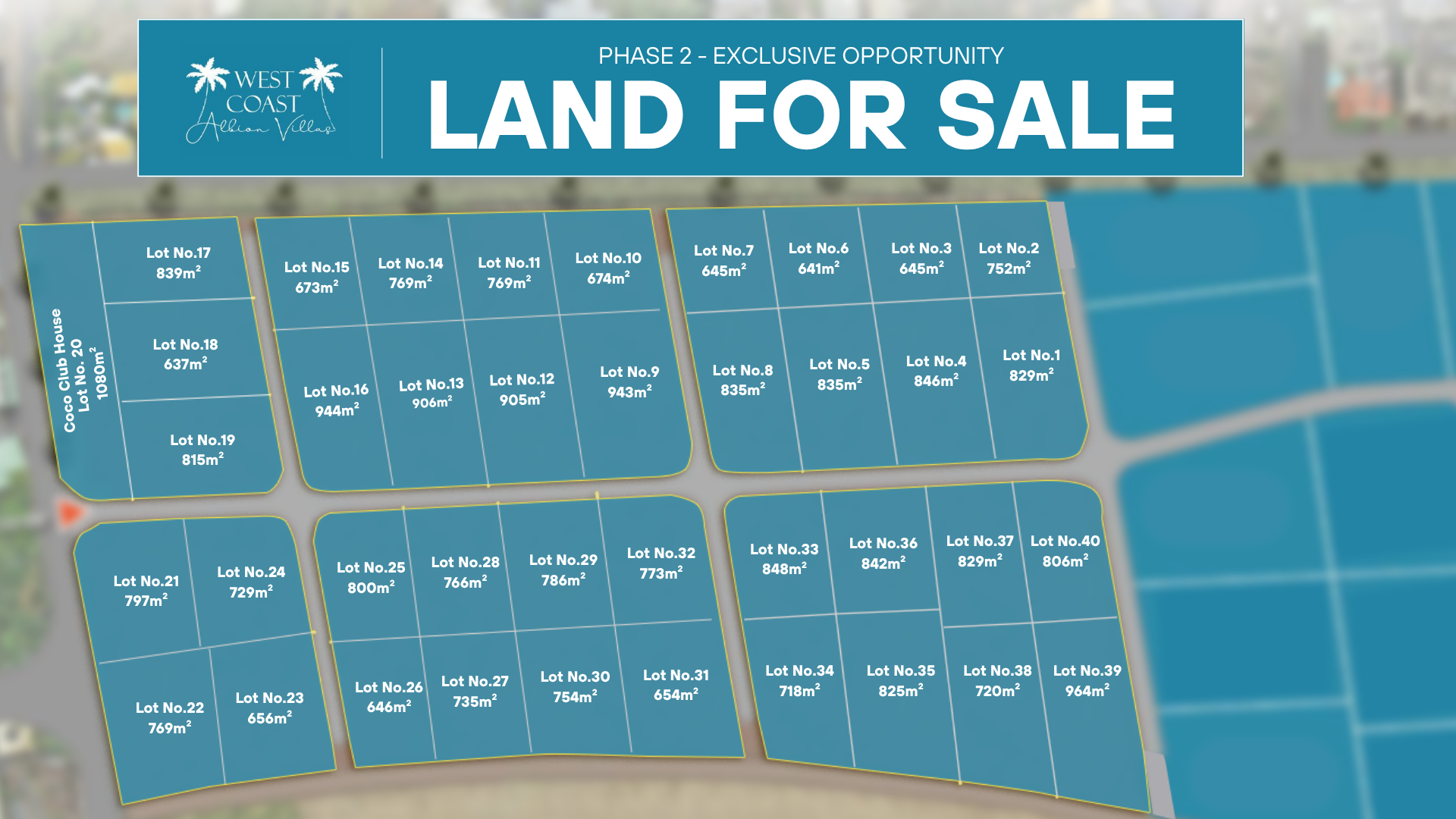 Enjoy full access to electricity, water, and high-speed Wi-Fi, and start building your dream home in a peaceful, secure environment just minutes away from the stunning West Coast beaches.
